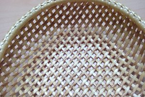 Die vorbereiteten Schienen werden dann über eine runde Holzform zu einer Schale geflochten. Wir werden uns mit dem Siebgeflecht und dem Sechseckgeflecht auseinandersetzten.